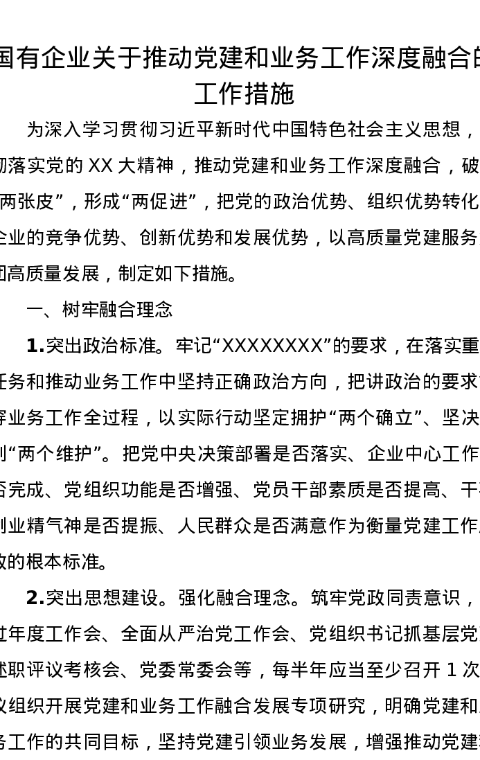 国有企业关于推动党建和业务工作深度融合的工作措施