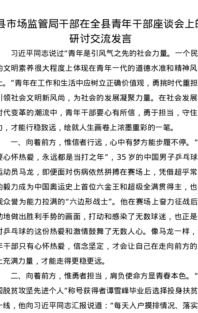 县市场监管局干部在全县青年干部座谈会上的研讨交流发言