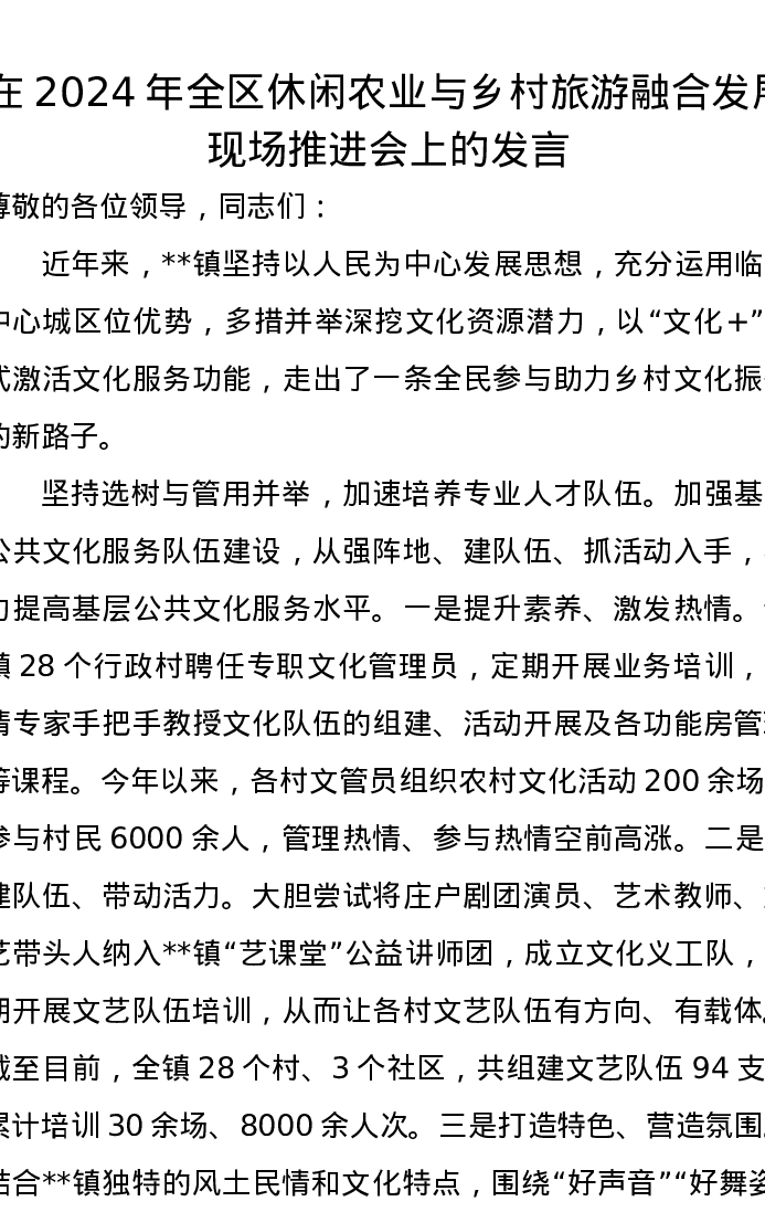 在2024年全区休闲农业与乡村旅游融合发展现场推进会上的发言