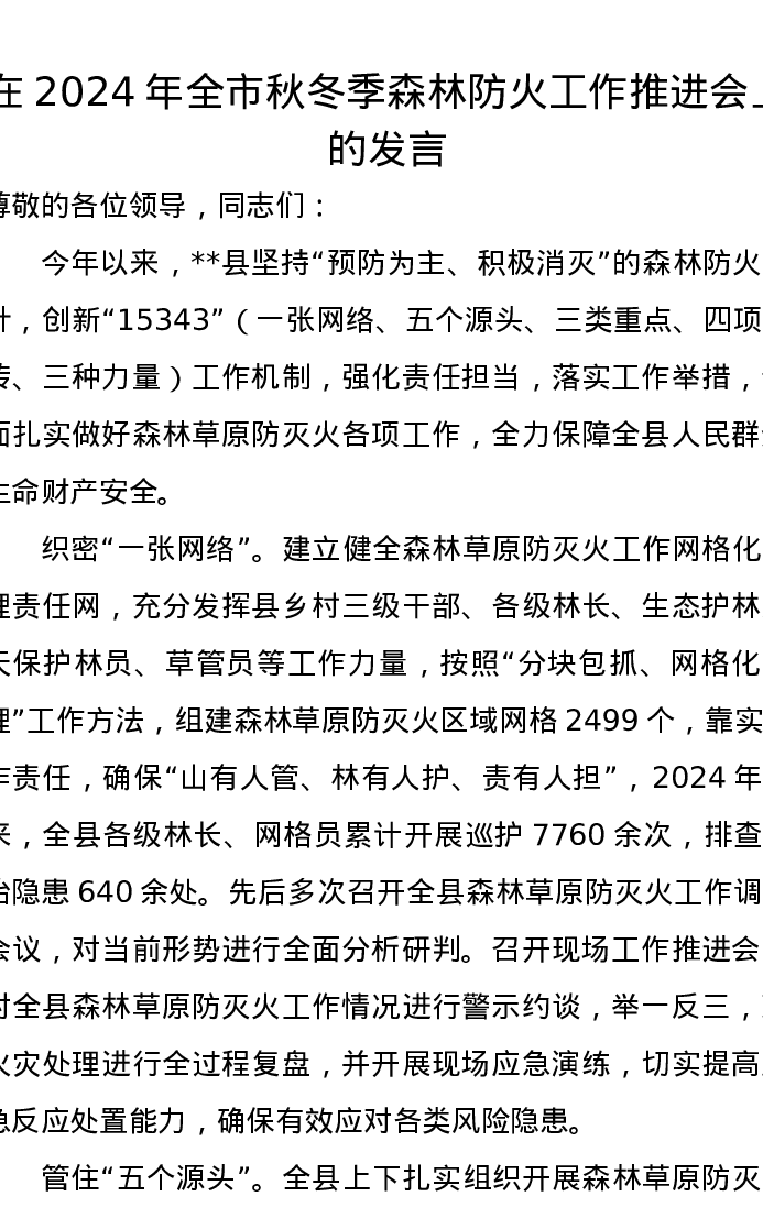 在2024年全市秋冬季森林防火工作推进会上的发言