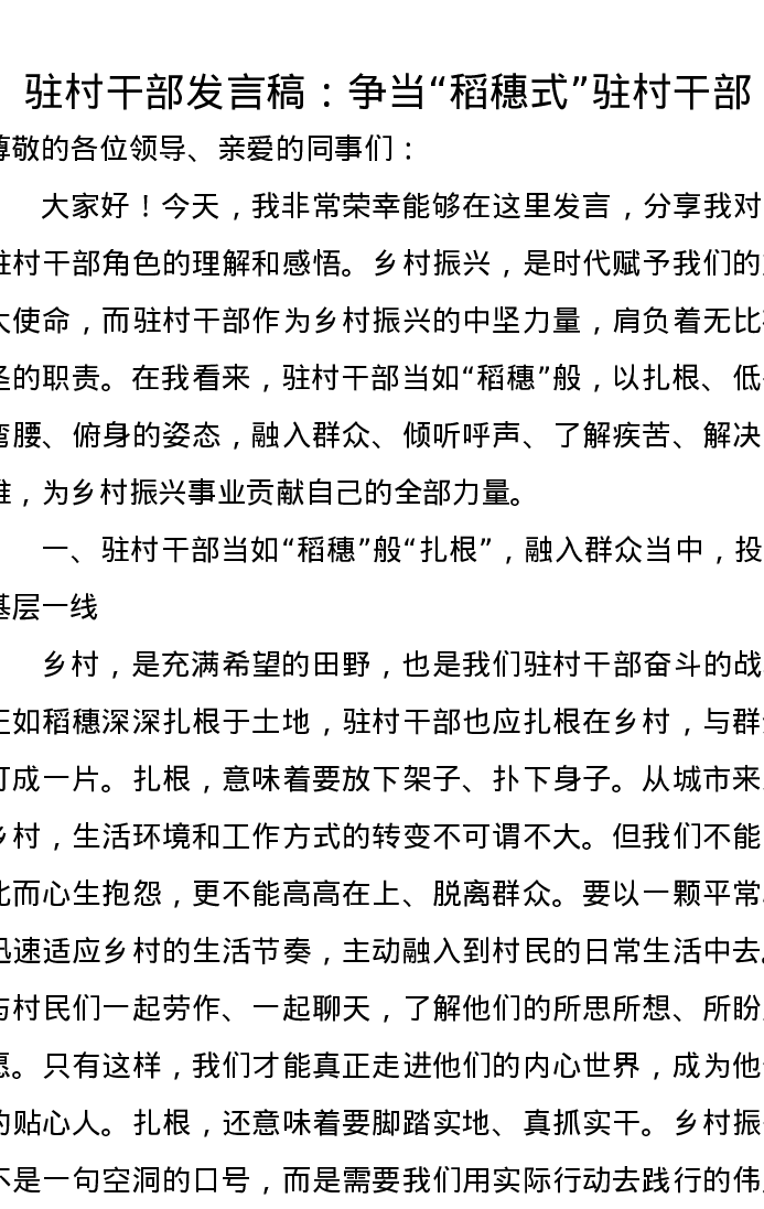 驻村干部发言稿:争当,“稻穗式”,驻村干部