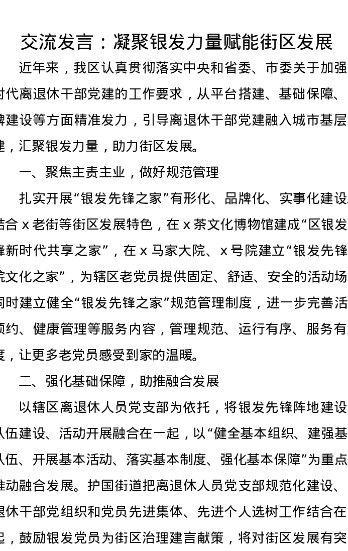 交流发言:凝聚银发力量赋能街区发展