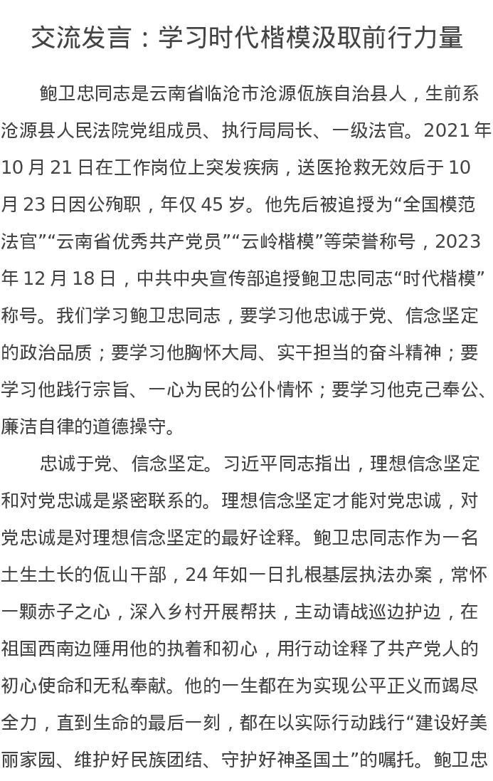 交流发言:学习时代楷模汲取前行力量