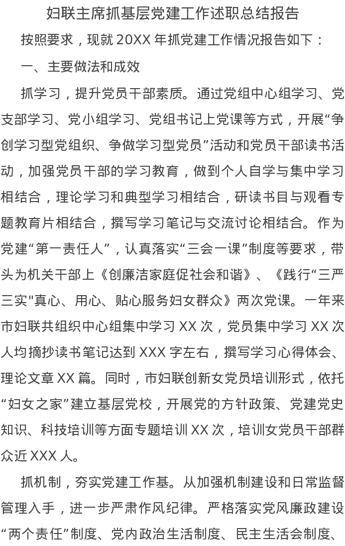 20220101妇联主席抓基层党建工作述职总结报告