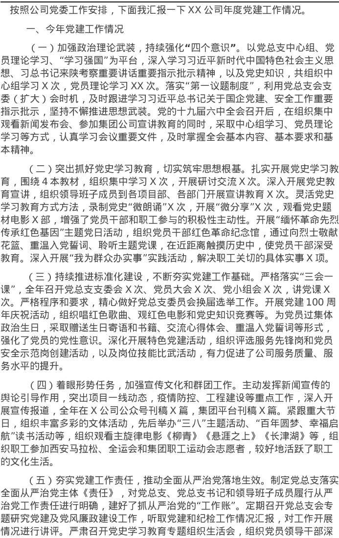 20220104某公司2021年度党组织书记抓党建述职评议汇报