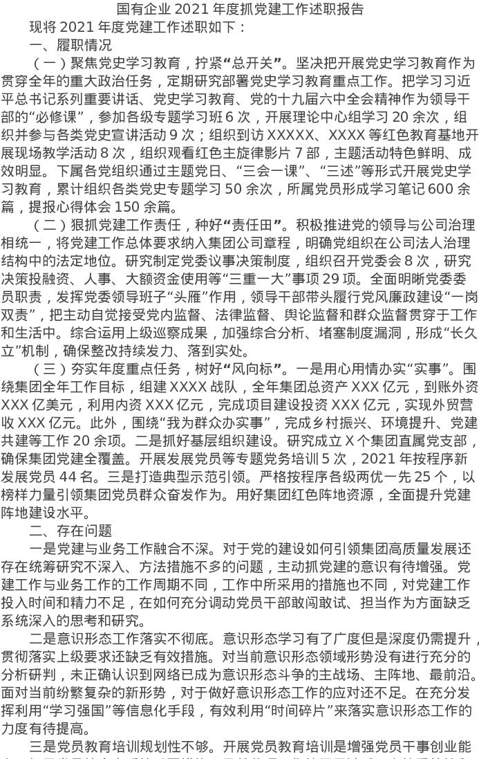 20220106国有企业2021年度抓党建工作述职报告