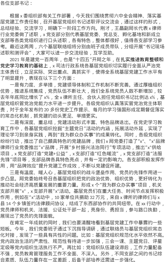20220106在2021年度基层党组织书记抓基层党建工作述职评议考核会议上的讲话