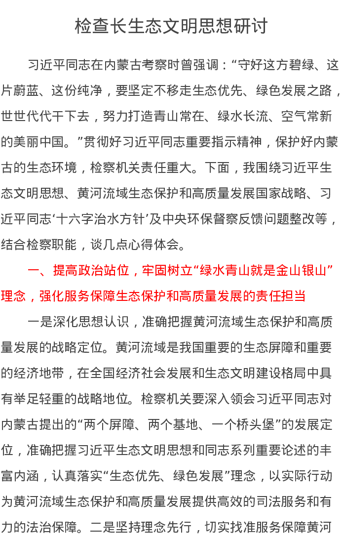 检察长生态文明思想研讨发言