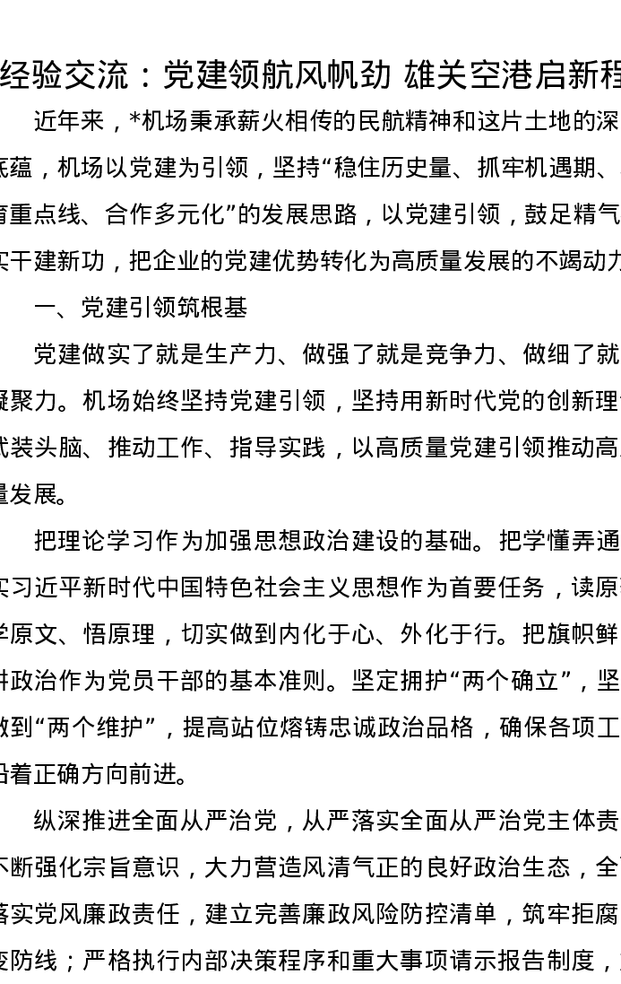 经验交流:党建领航风帆劲雄关空港启新程