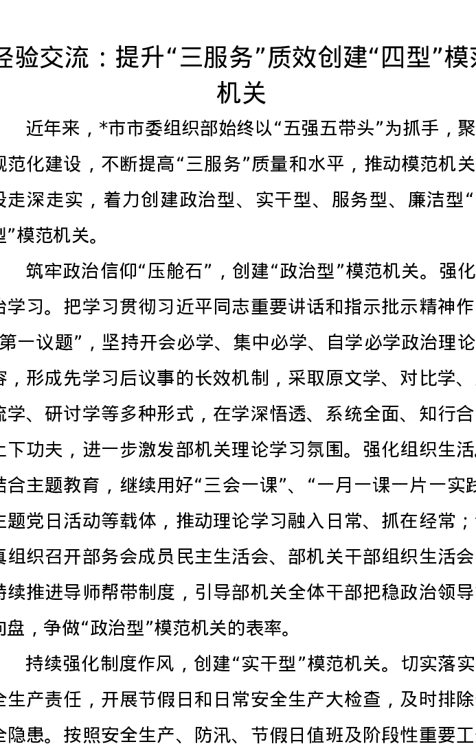 经验交流:提升“三服务”质效创建“四型”模范机关