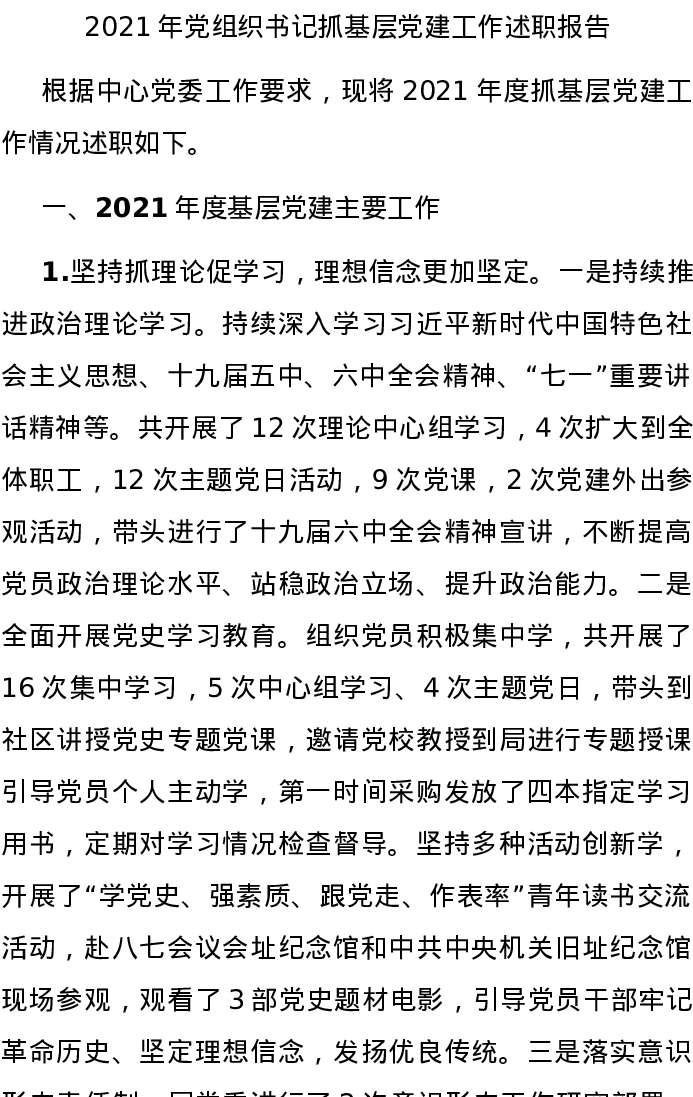 20220108-2021年党组织书记抓基层党建工作述职报告