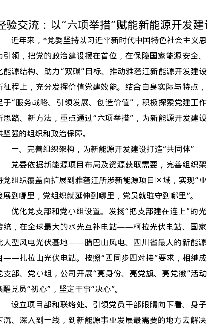 经验交流:以“六项举措”赋能新能源开发建设