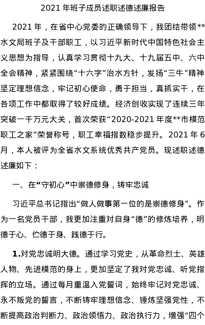 20220108-2021年班子成员述职述德述廉报告