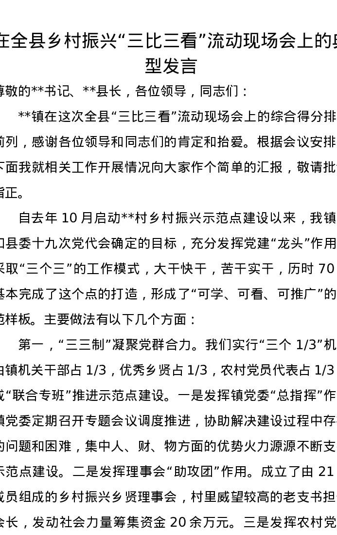 在全县乡村振兴“三比三看”流动现场会上的典型发言