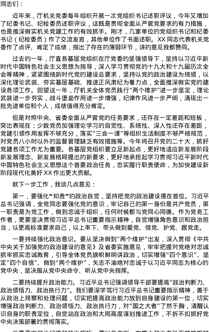 20220110某厅分管领导在抓基层党建和党风廉政建设述职评议会议上的讲话