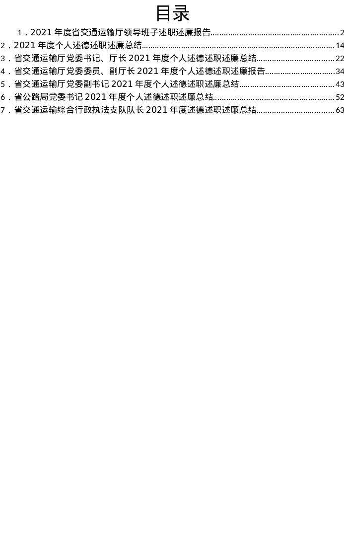 20220111交通运输厅班子及成员述职述廉报告汇编7篇