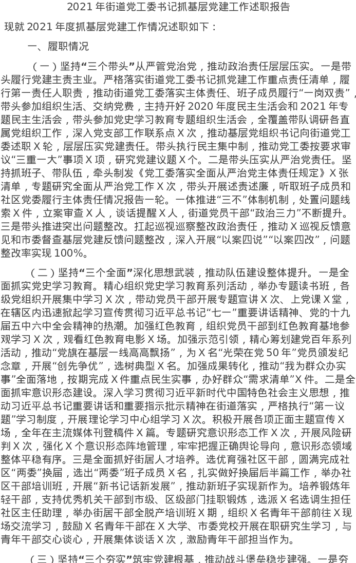 20220115-2021年街道党工委书记抓基层党建工作述职报告