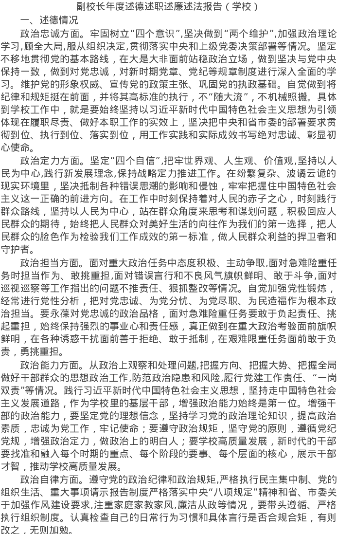 20220118副校长年度述德述职述廉述法报告(学校)