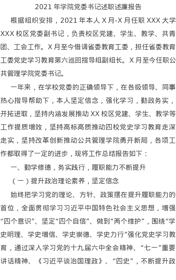 20220121-2021年学院党委书记述职述廉报告