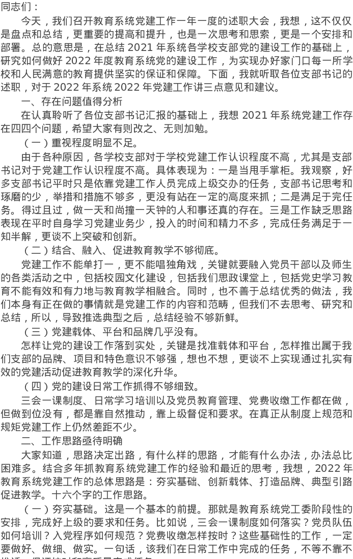 20220222在2022年教育系统党建工作述职会议上的讲话