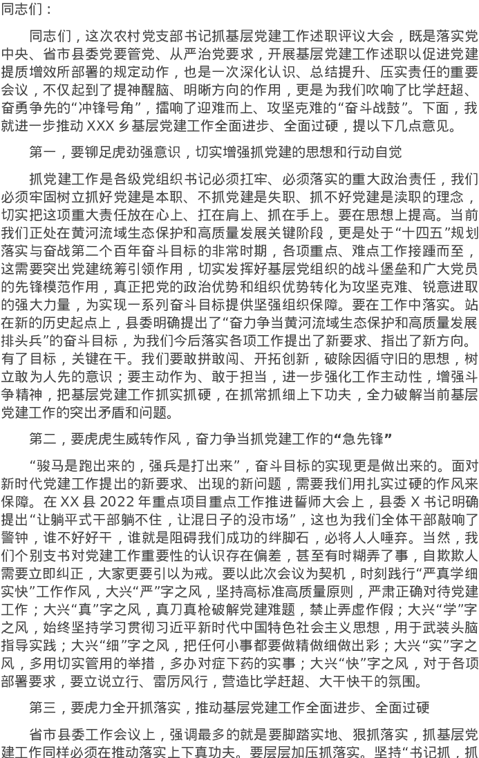 20220317在乡村党支部书记抓党建述职大会上的讲话