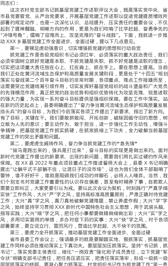 20220319镇党委书记在农村党支部书记2022年抓基层党建工作述职评议大会上的讲话