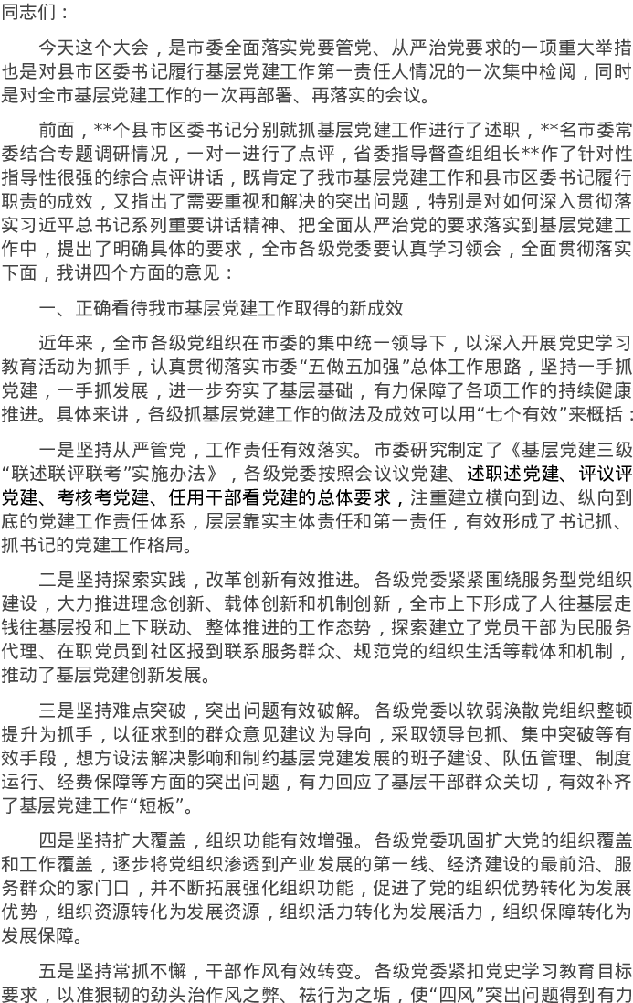 20220512全市基层党建暨县市区党委书记述职评议大会上的讲话