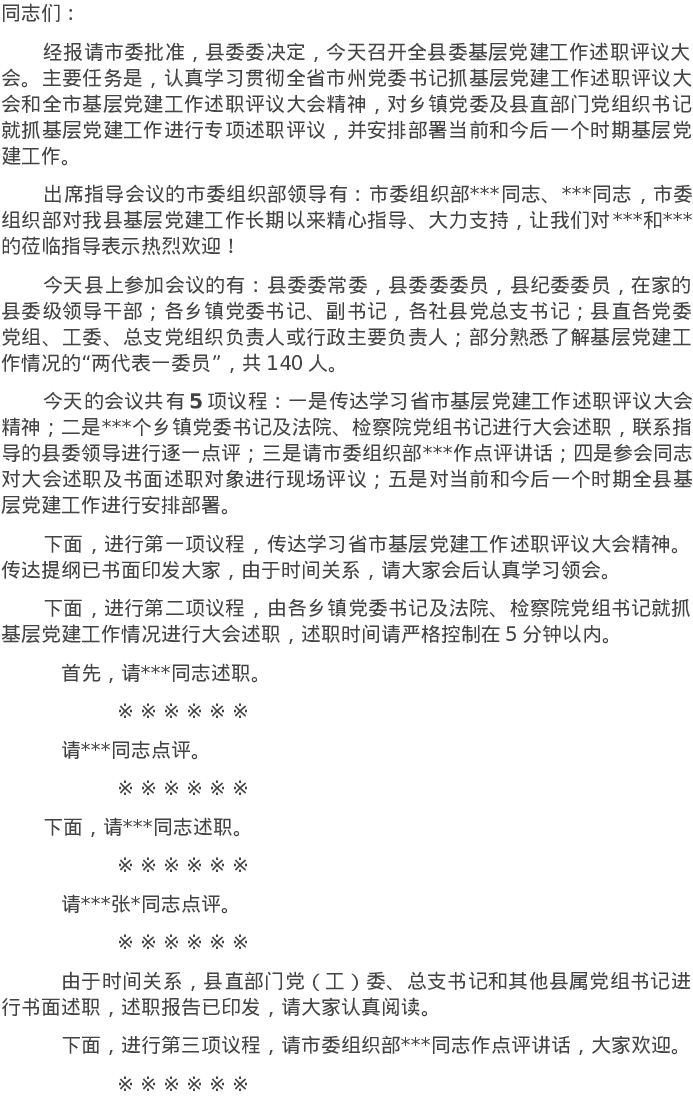 20220622在全县基层党建工作述职评议会上的主持讲话