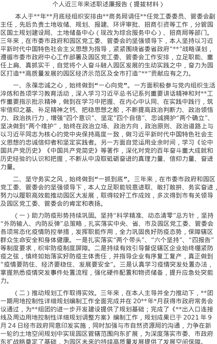 20220711个人近三年来述职述廉报告(提拔材料)