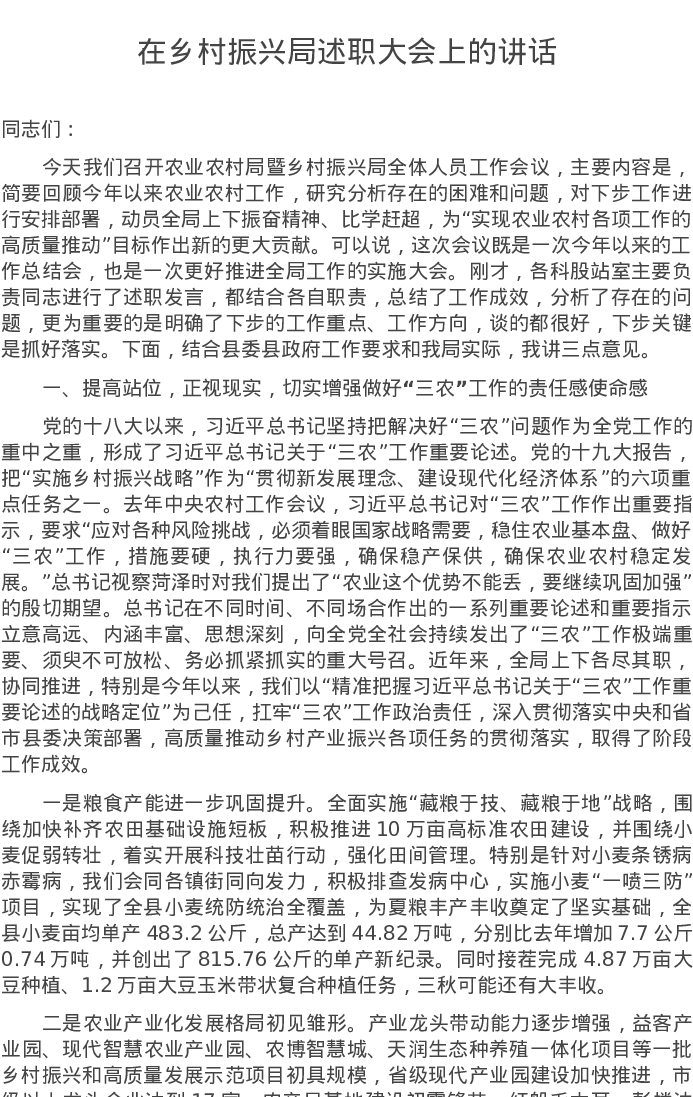 20220801在乡村振兴局述职大会上的讲话