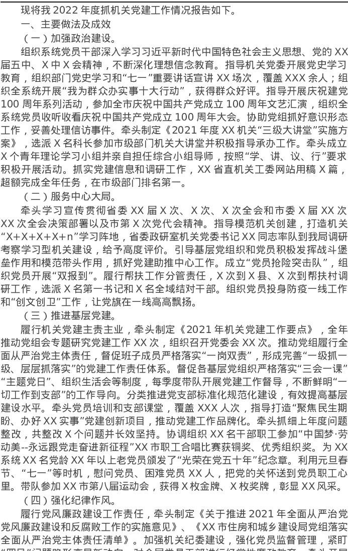 局直属机关党委书记2022年度抓机关党建工作述职报告