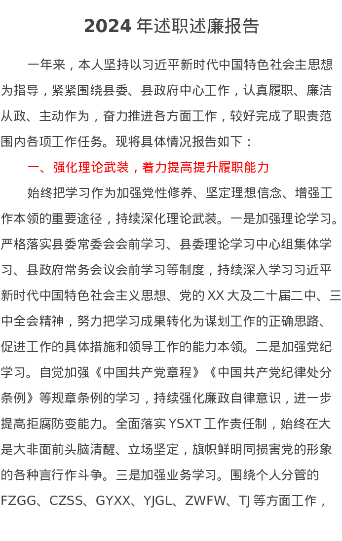 县委领导2024年述职述廉报告