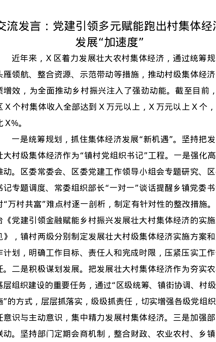 交流发言:党建引领多元赋能跑出村集体经济发展“加速度”