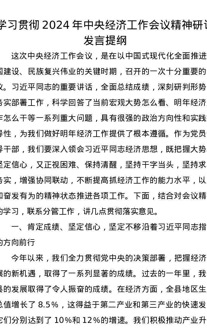 学习贯彻2024年中央经济工作会议精神研讨发言提纲