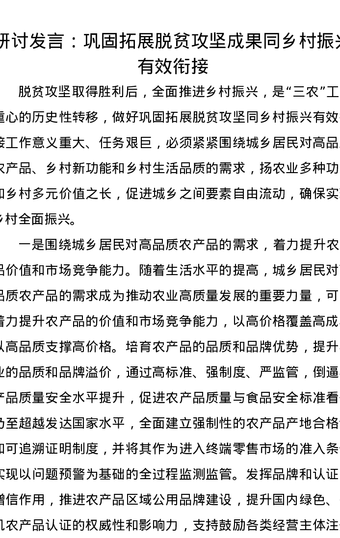 研讨发言:巩固拓展脱贫攻坚成果同乡村振兴有效衔接