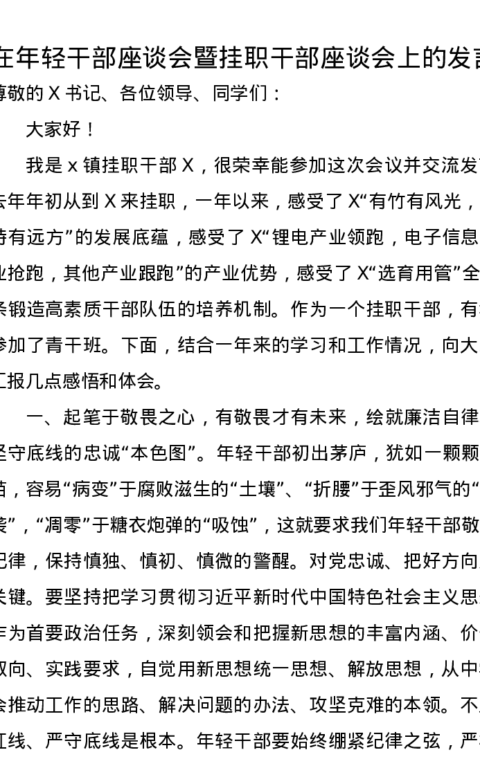 在年轻干部座谈会暨挂职干部座谈会上的发言