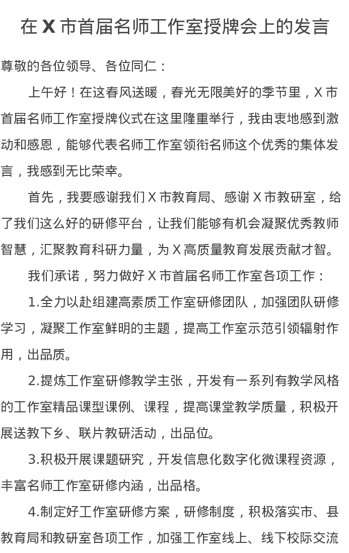 在X市首届名师工作室授牌会上的发言