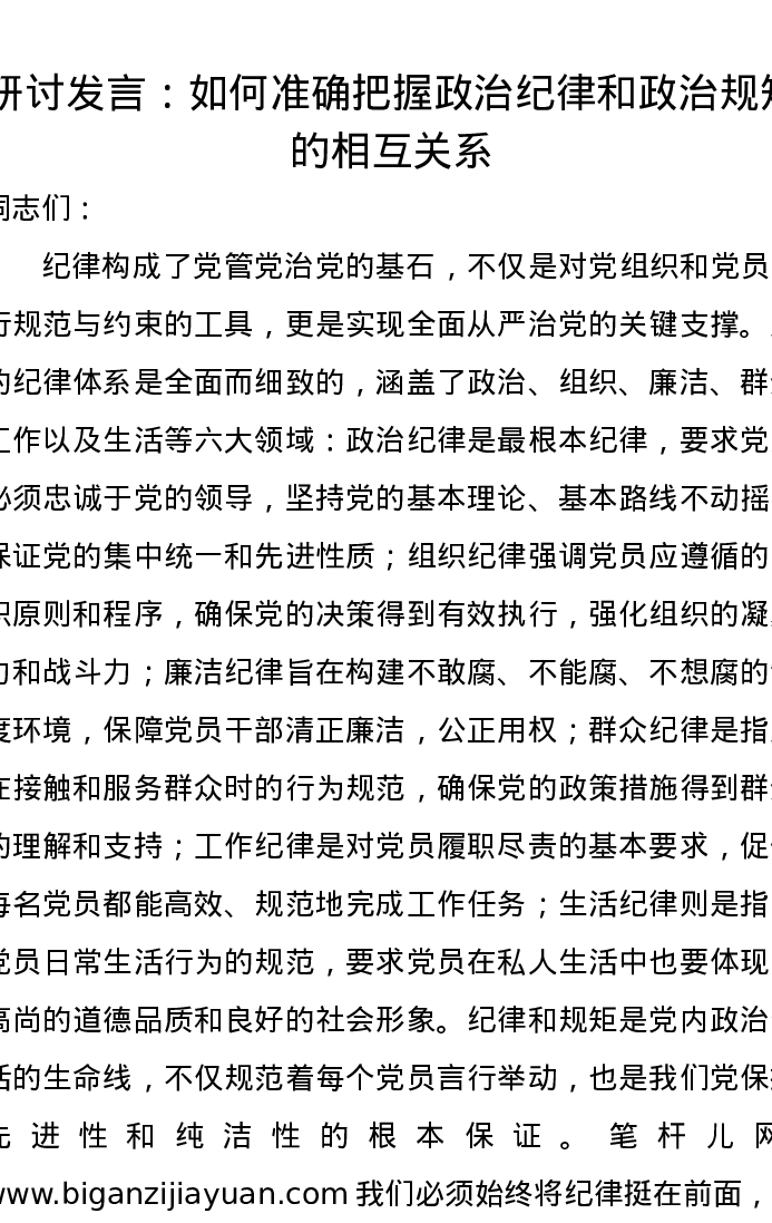研讨发言:如何准确把握政治纪律和政治规矩的相互关系