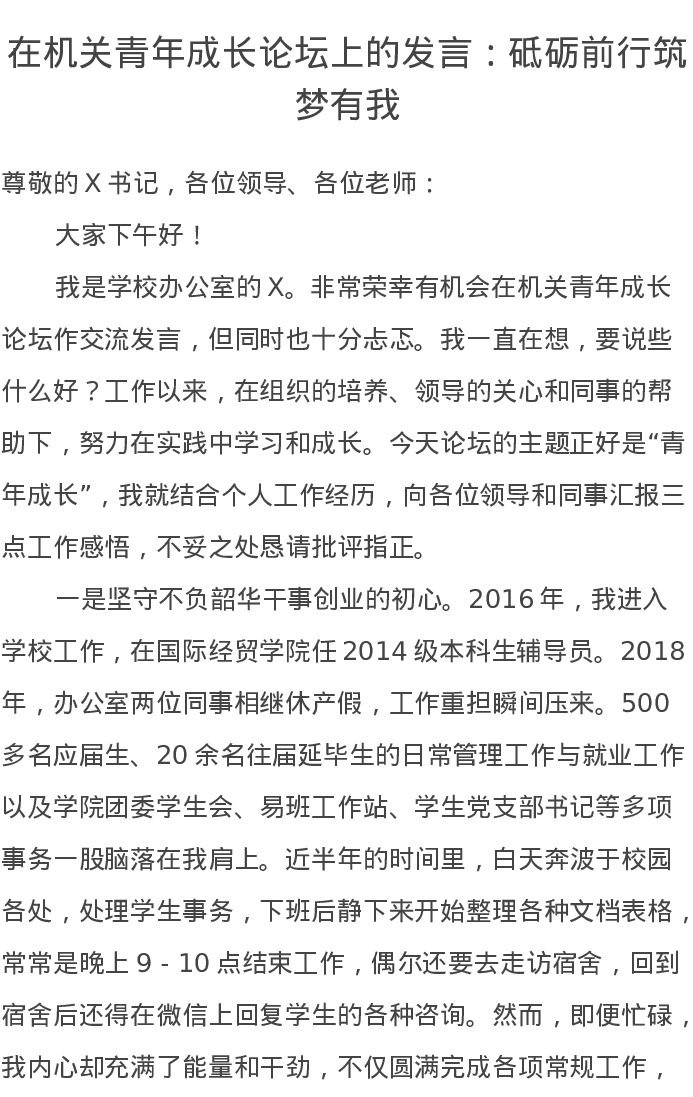 在机关青年成长论坛上的发言:砥砺前行筑梦有我
