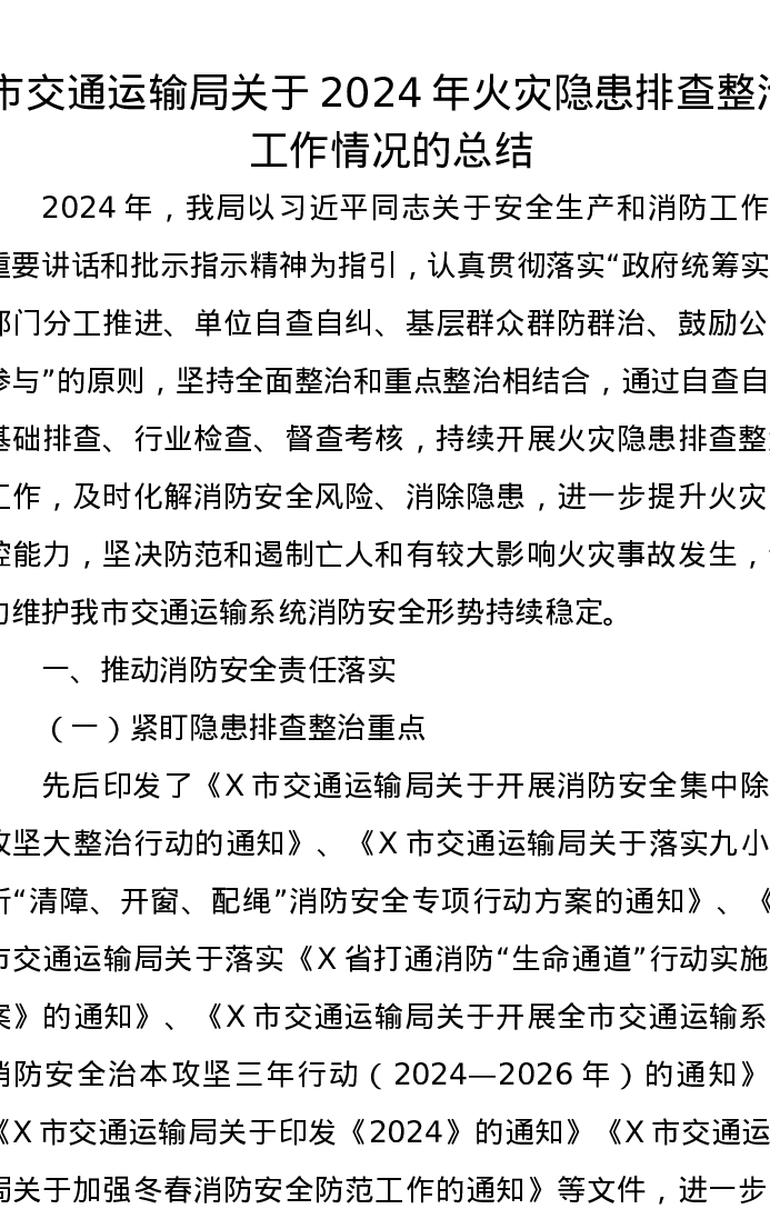 市交通运输局关于2024年火灾隐患排查整治工作情况的总结