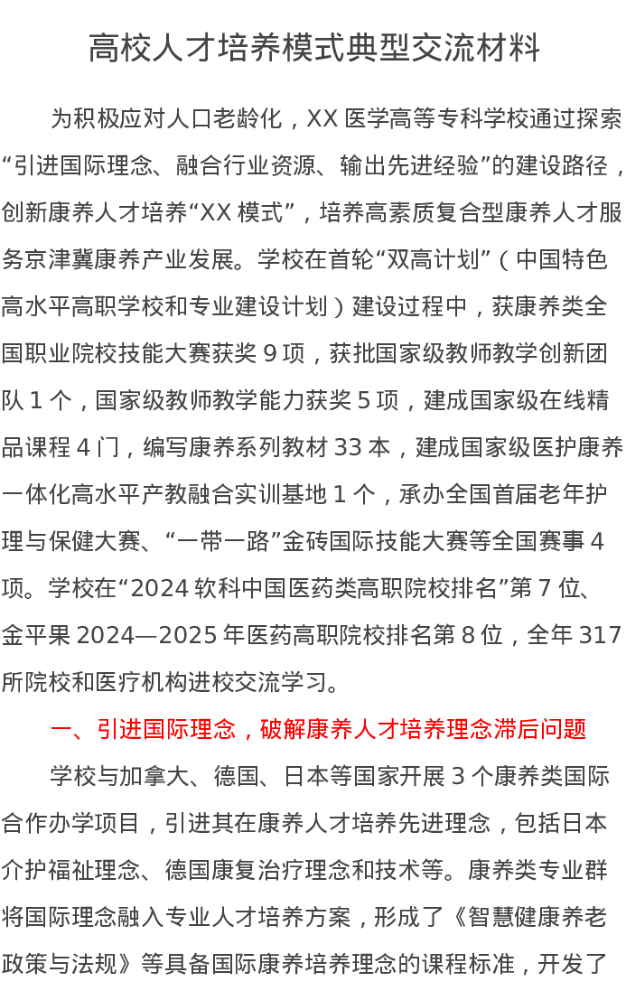 高校人才培养模式典型交流发言材料