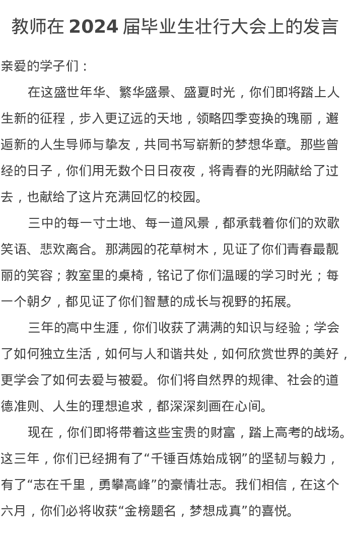 教师在2024届毕业生壮行大会上的发言