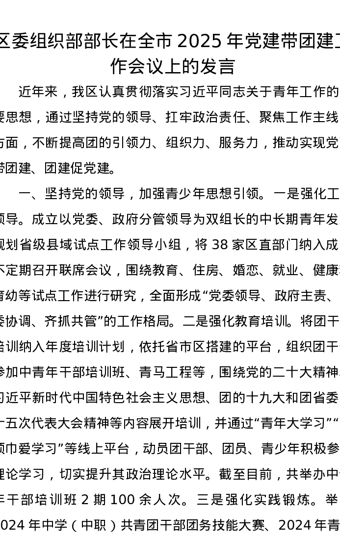 区委组织部部长在全市2025年党建带团建工作会议上的发言
