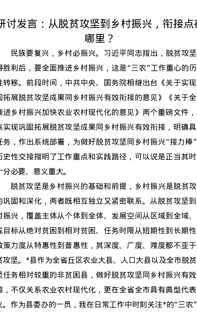 研讨发言:从脱贫攻坚到乡村振兴,衔接点在哪里?