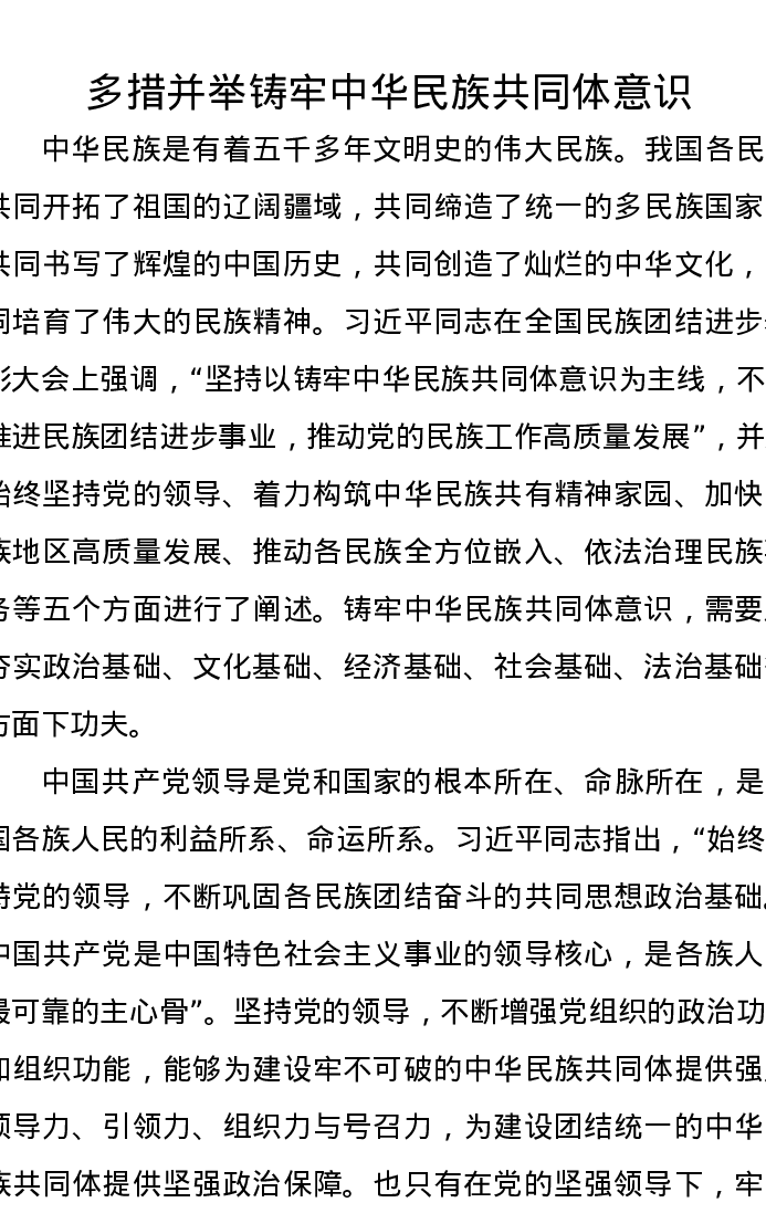 研讨发言:多措并举铸牢中华民族共同体意识