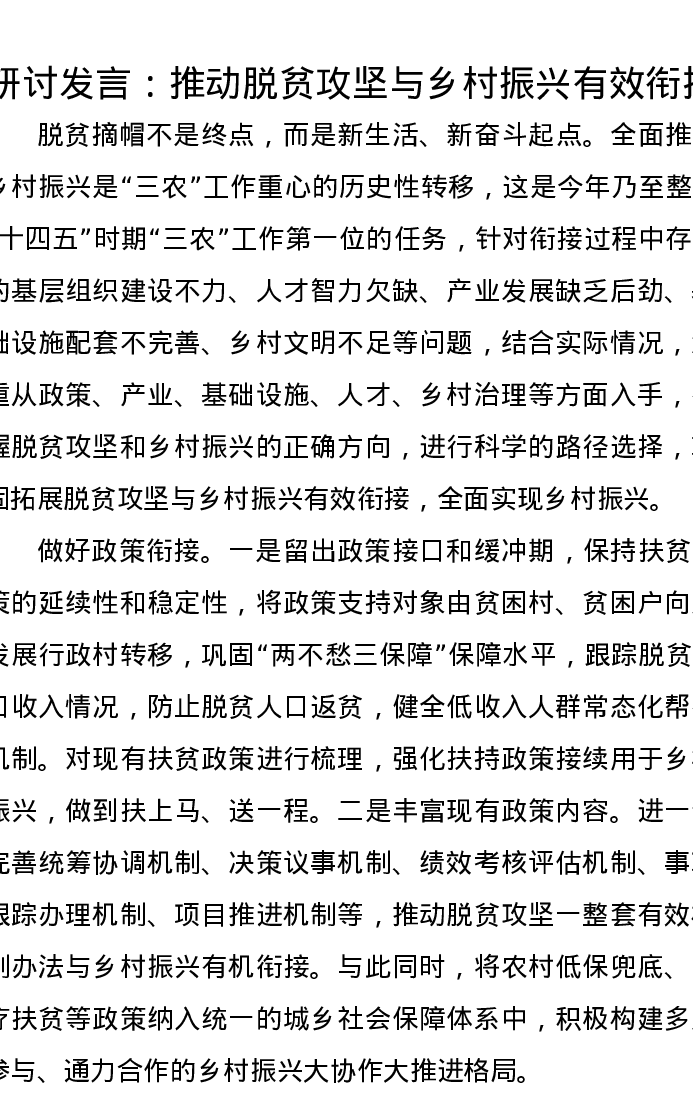 研讨发言:推动脱贫攻坚与乡村振兴有效衔接
