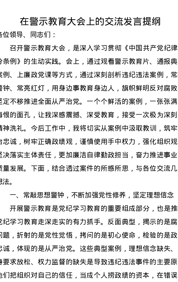 在警示教育大会上的交流发言提纲