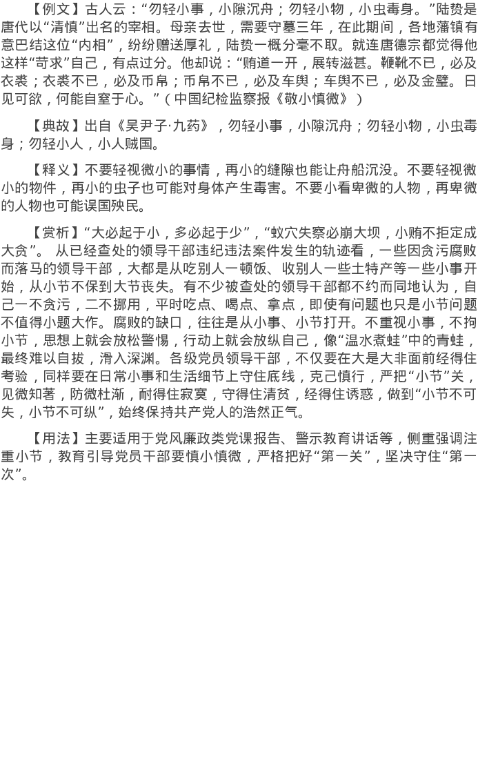 20220418【写作素材】【写材料用典】勿轻小事,小隙沉舟;勿轻小物,小虫毒身