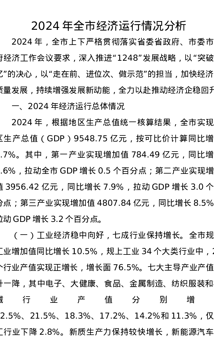 2024年全市经济运行情况分析报告