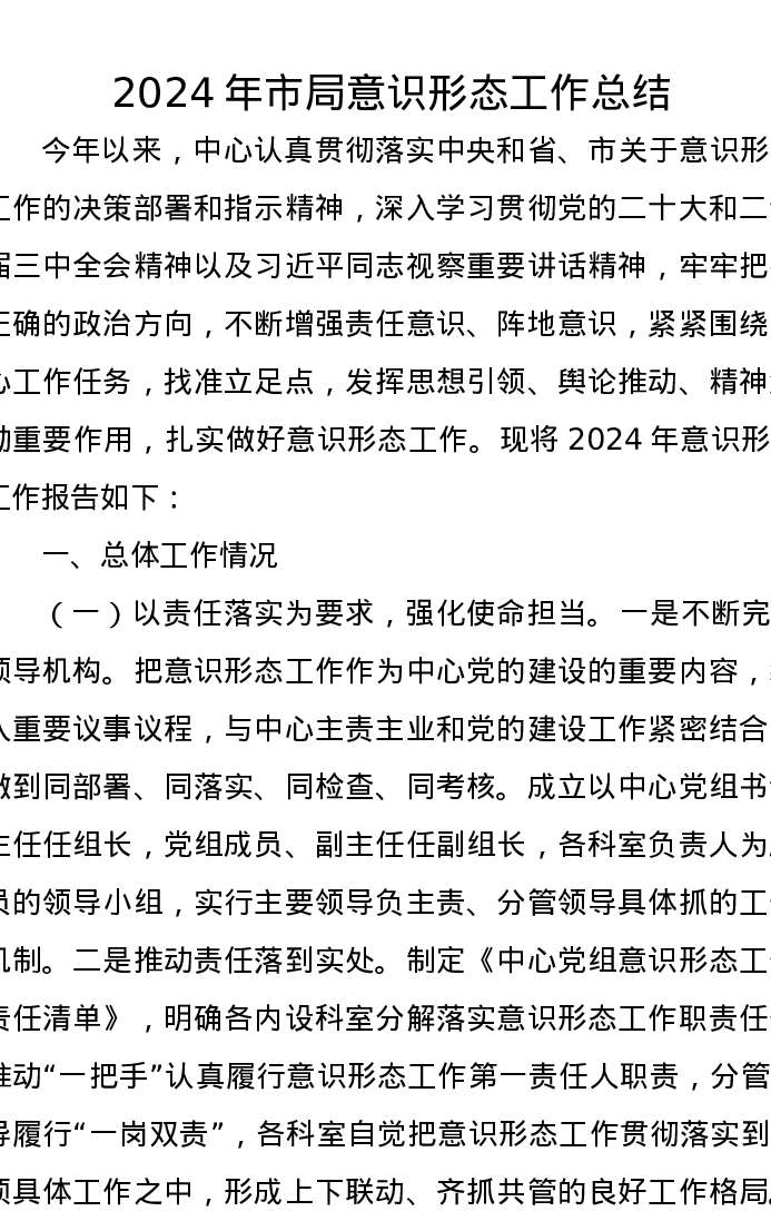 2024年市局意识形态工作总结